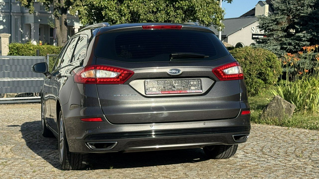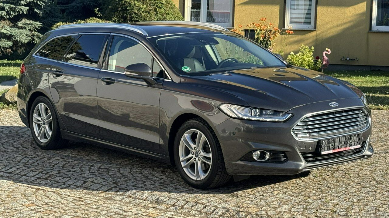 Piękny FORD MONDEO MK5 z 2016r w wersji kombi z najbogatszym wyposażeniem TITANIUM oraz z niezawodnym i dynamicznym silnikiem diesla 2.0 TDCI o mocy 180KM i automatyczną skrzynią biegową oraz w pełni udokumentowanym przebiegiem 189.000km
