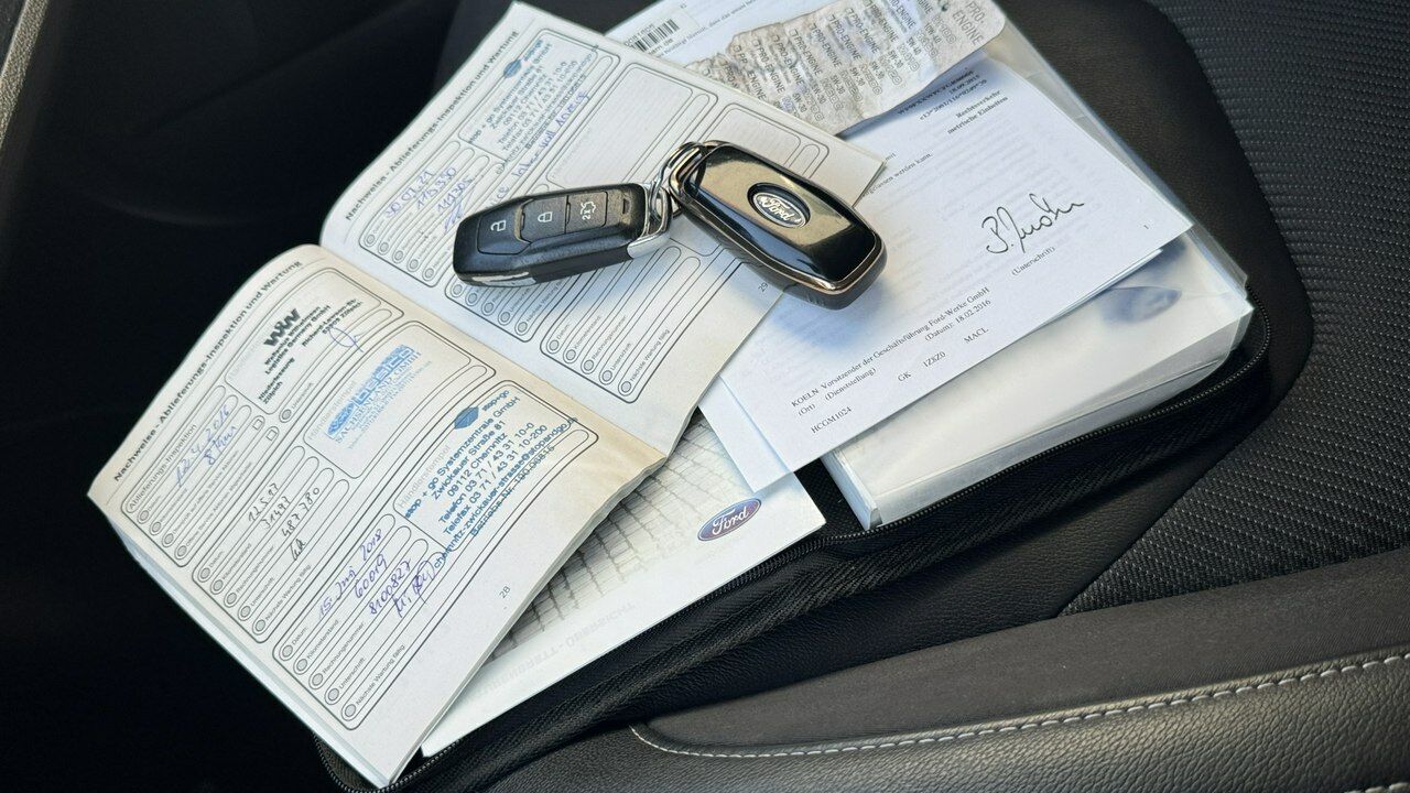 Książka serwisowa, niemieckie przeglądy TUV, faktury i rachunki z salonu.